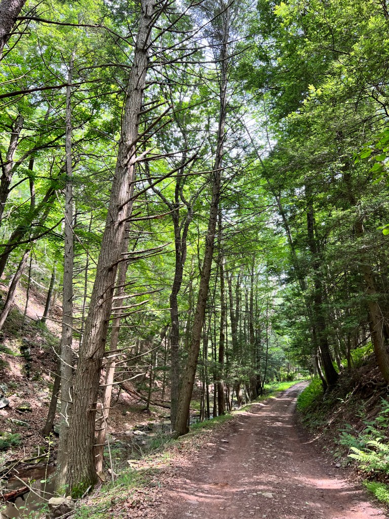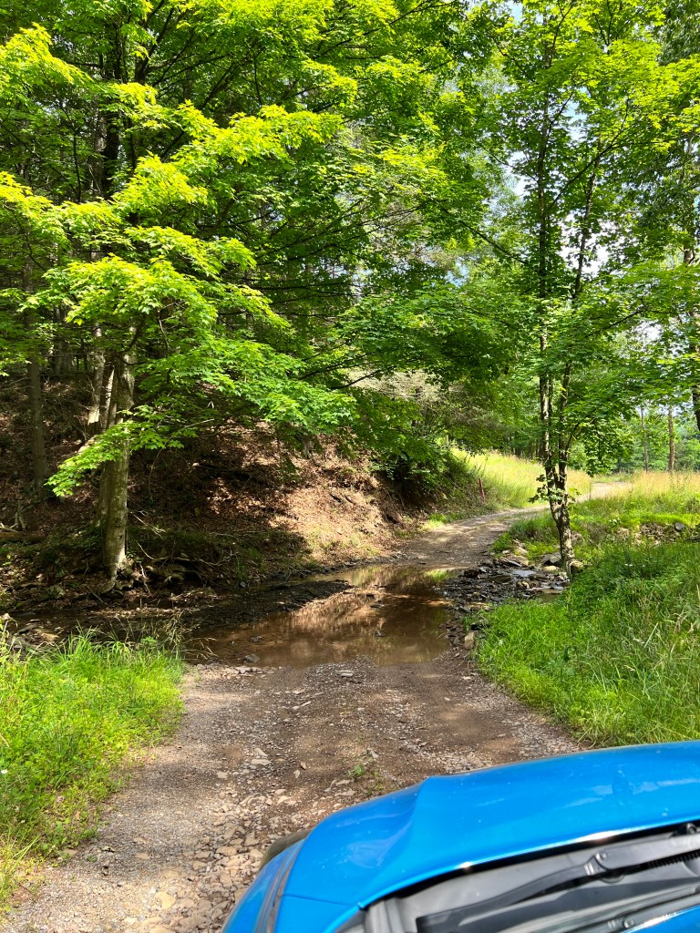 You will find it on the south side of Wardensville Pike (the road all outsiders, like me, tend to refer to as “48/55”–our primary reference being highway signs and maps). The spring is easily recognizable for the muddy and rutted turn off, not far from the state line and the Tuscarora Trail head. There’s often a long line of cars when I pass, as people in the area will wait for their turn to fill up and take water home.
